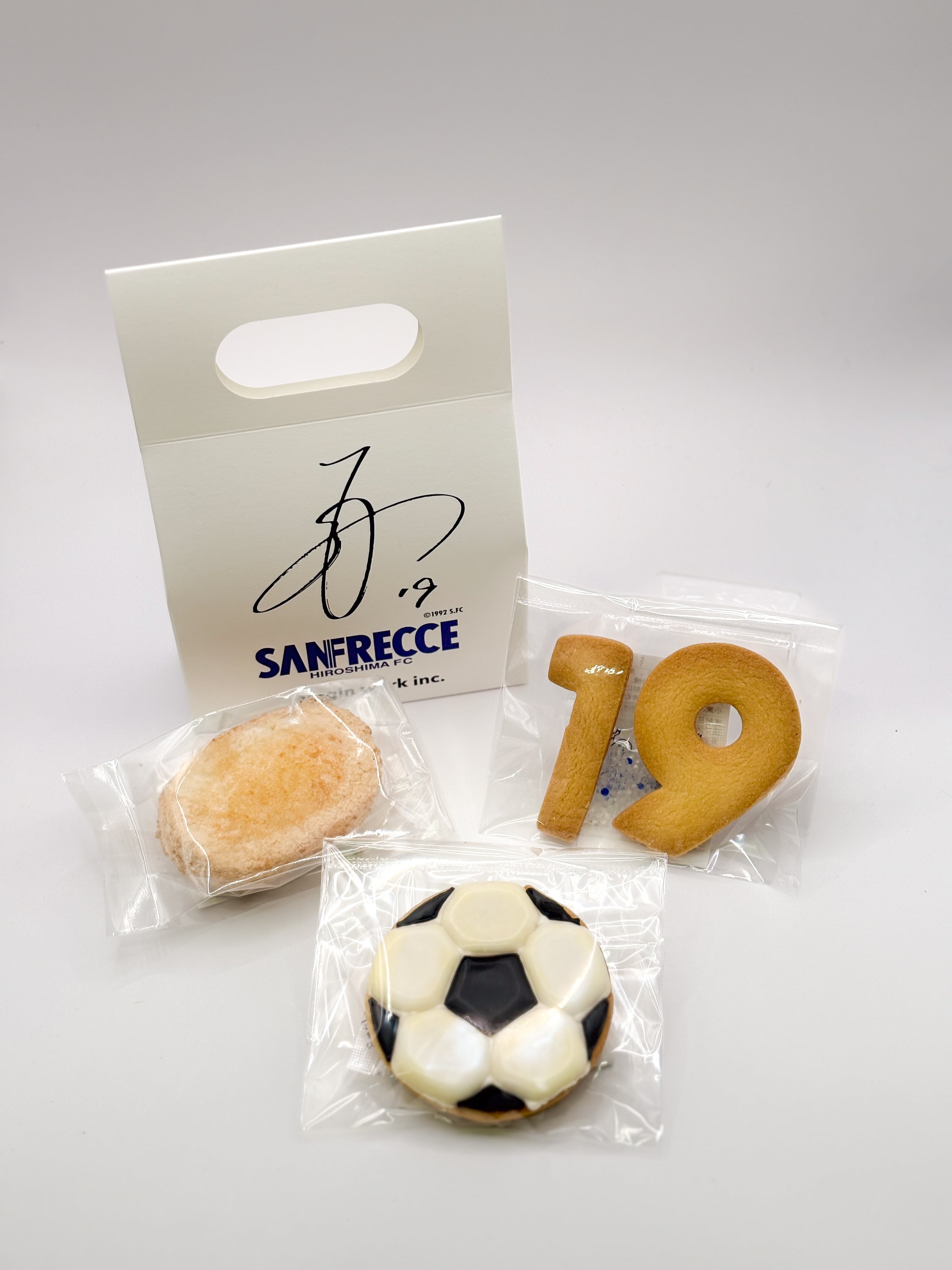 佐々木翔選手の背番号19とサッカーボールデザインのクッキー